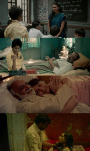 Cinematographer Aakash Raj angles the viewer through three distinct time periods within a Mumbai apartment complex characterized by Dar Gai’s prolific hold on us with her artistry of creating great dialogues. As someone who loves to write, my ears watched as much as my eyes did. It is the writing that wins this film over for me. Actually what won me over, first and foremost, was the performance of the young talent, Arya Dave, who plays Raj in the first of the film’s three segments. Who is this kid? He’s good.